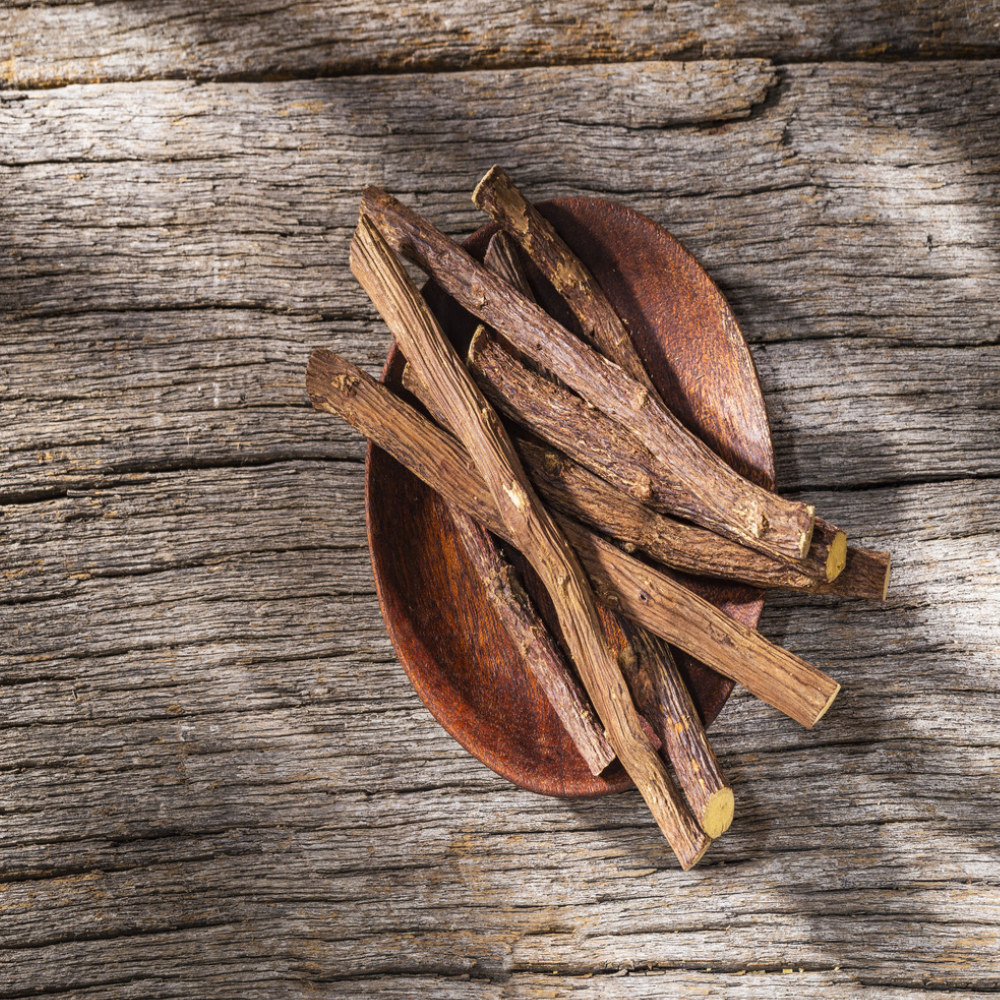 A natural lightening agent, Licorice contains glycyrrhizin, which inhibits melanin production, reducing hyperpigmentation and promoting skin brightening.