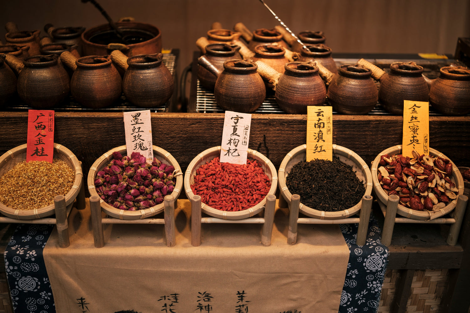 In TCM, herbal nutrition & tonics create an internal ecosystem of harmony to support the organ systems that directly shape skin’s texture, luminosity, firmness, and resilience. When herbs fortify liver, spleen, kidneys, and lungs, the skin receives a steady supply of clean blood, balanced hormones, abundant qi, and replenished essence of youth. Liver tonics like goji berries, turmeric, chrysanthemum smooth the flow of qi and blood, reducing congestion, dullness, hormonal breakouts, pigmentation, and stagnation that imprint on the skin. Spleen-supporting herbs such as Chinese yam, astragalus, lotus seed, and barley strengthen digestion and nutrient assimilation. They transform food into the building blocks of healthy skin including collagen, moisture, and radiance, while preventing puffiness, sallow complexion, and premature sagging. Kidney-nourishing tonic herbs like goji, and black sesame replenish 'jing', the essence tied to aging, hair quality, and skin firmness. Lung-moisturizing herbs such as pear, lily bulb and mulberry leaf hydrate from within, improving skin texture, sensitivity, and moisture retention while supporting emotional release.